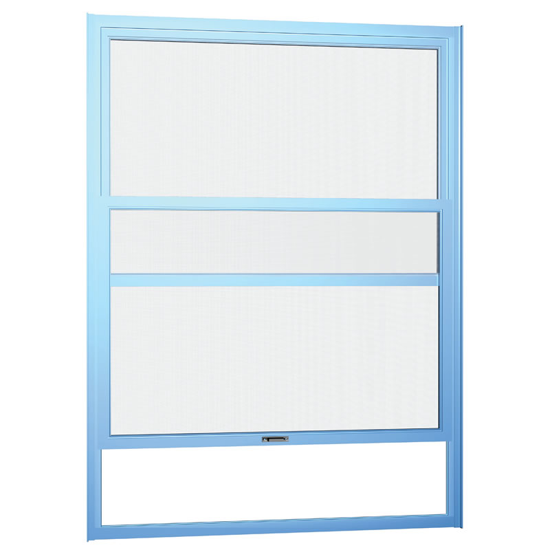 Zanzariera a telaio fisso in alluminio estruso, con ante a scorrimento verticale (saliscendi) smontabili.